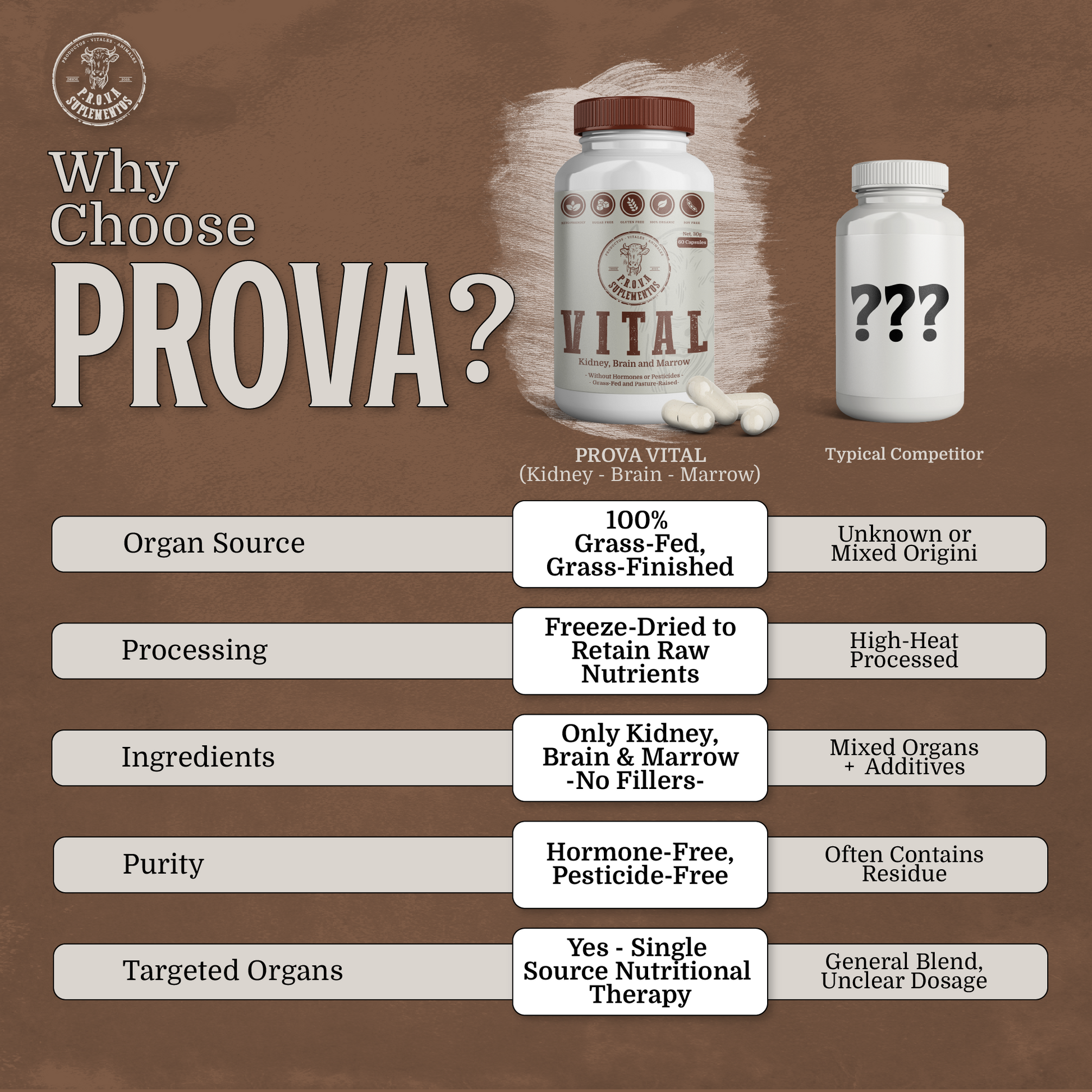 Cápsulas de órganos deshidratados de origen natural. Diseñado para potenciar la energía, la función cognitiva y la regeneración celular.